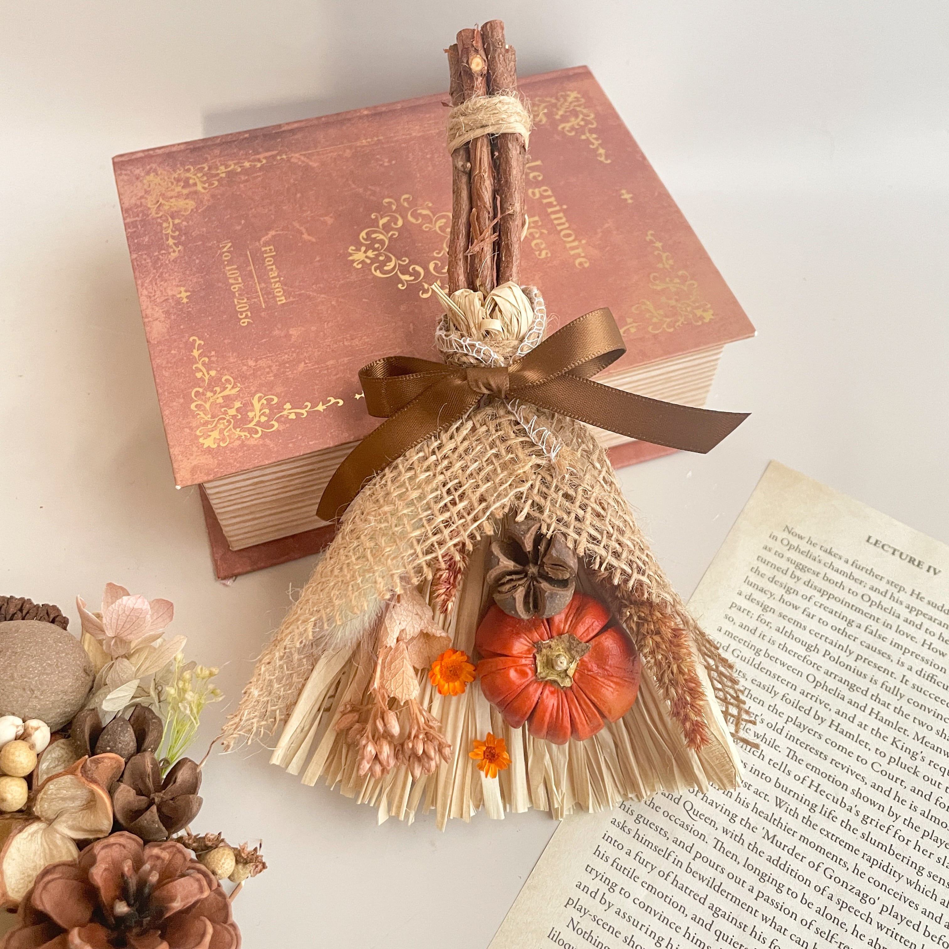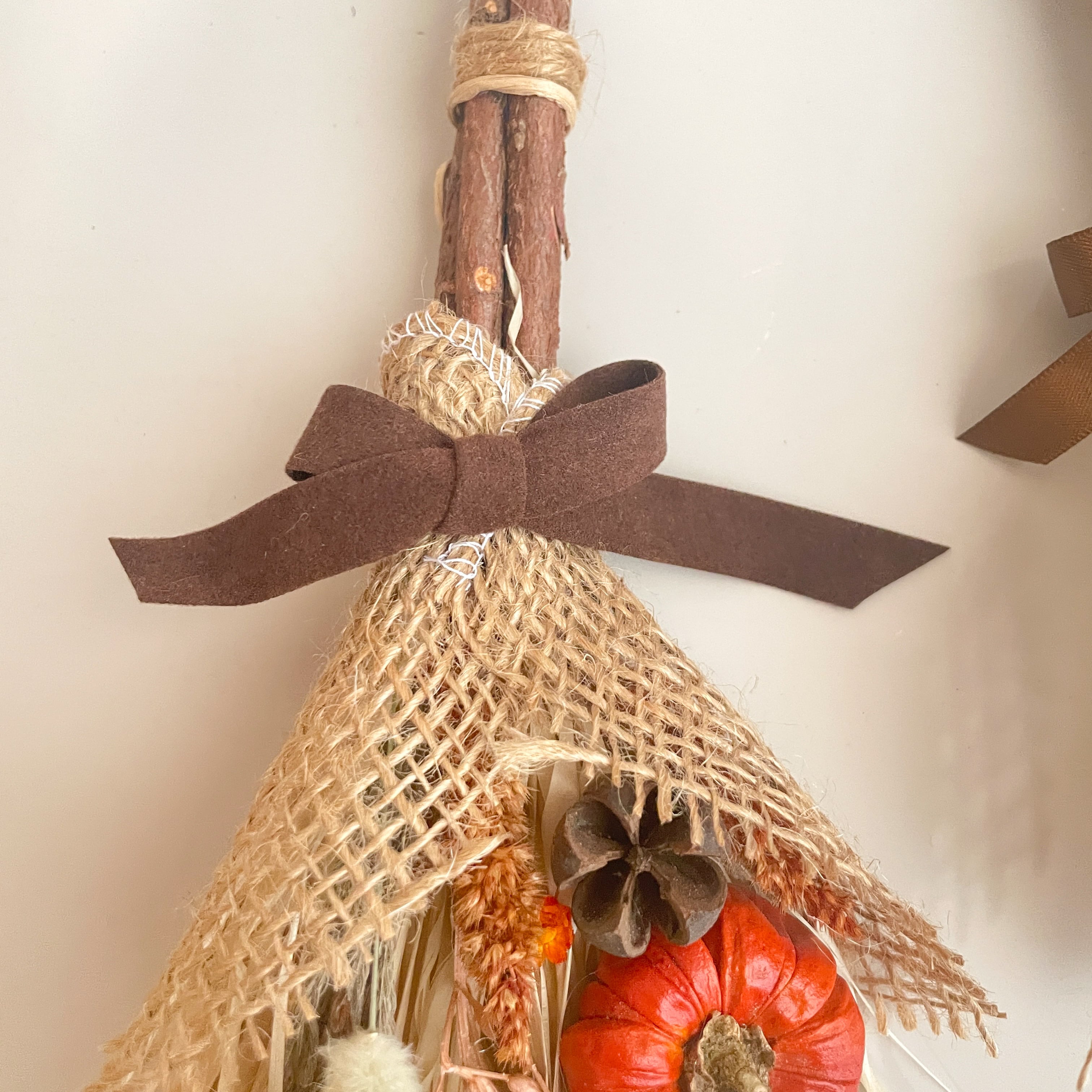 【ハロウィン】ミニ箒のアレンジ カボチャ ドライフラワー 魔女 ハロウィンアレンジ ハロウィン飾り 秋 スワッグ