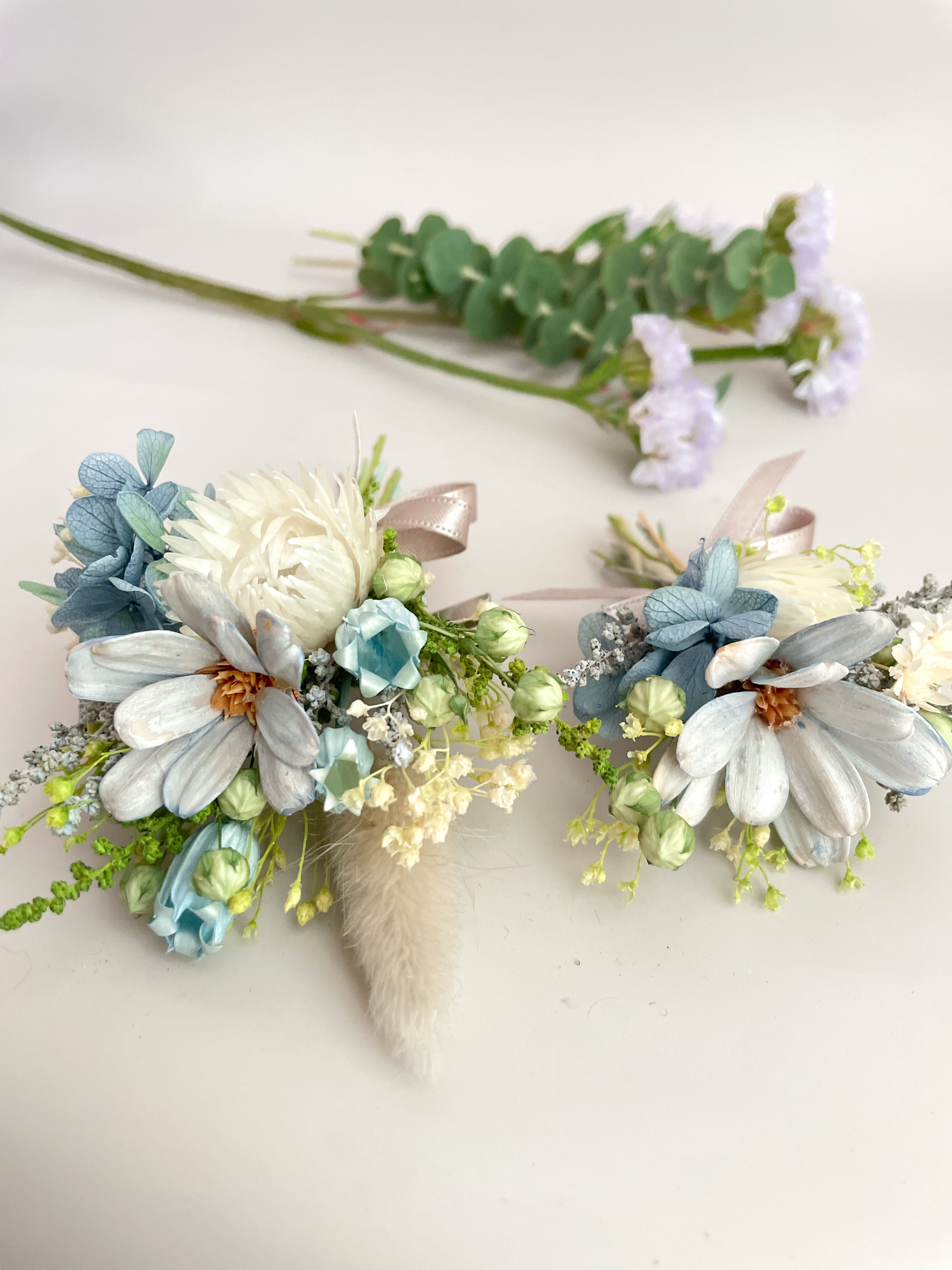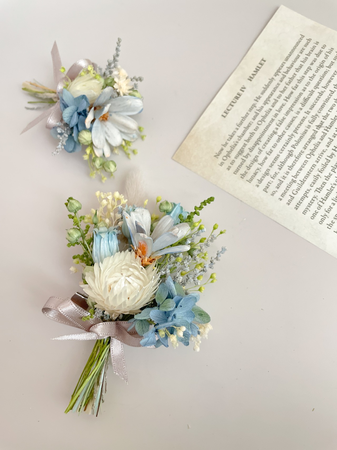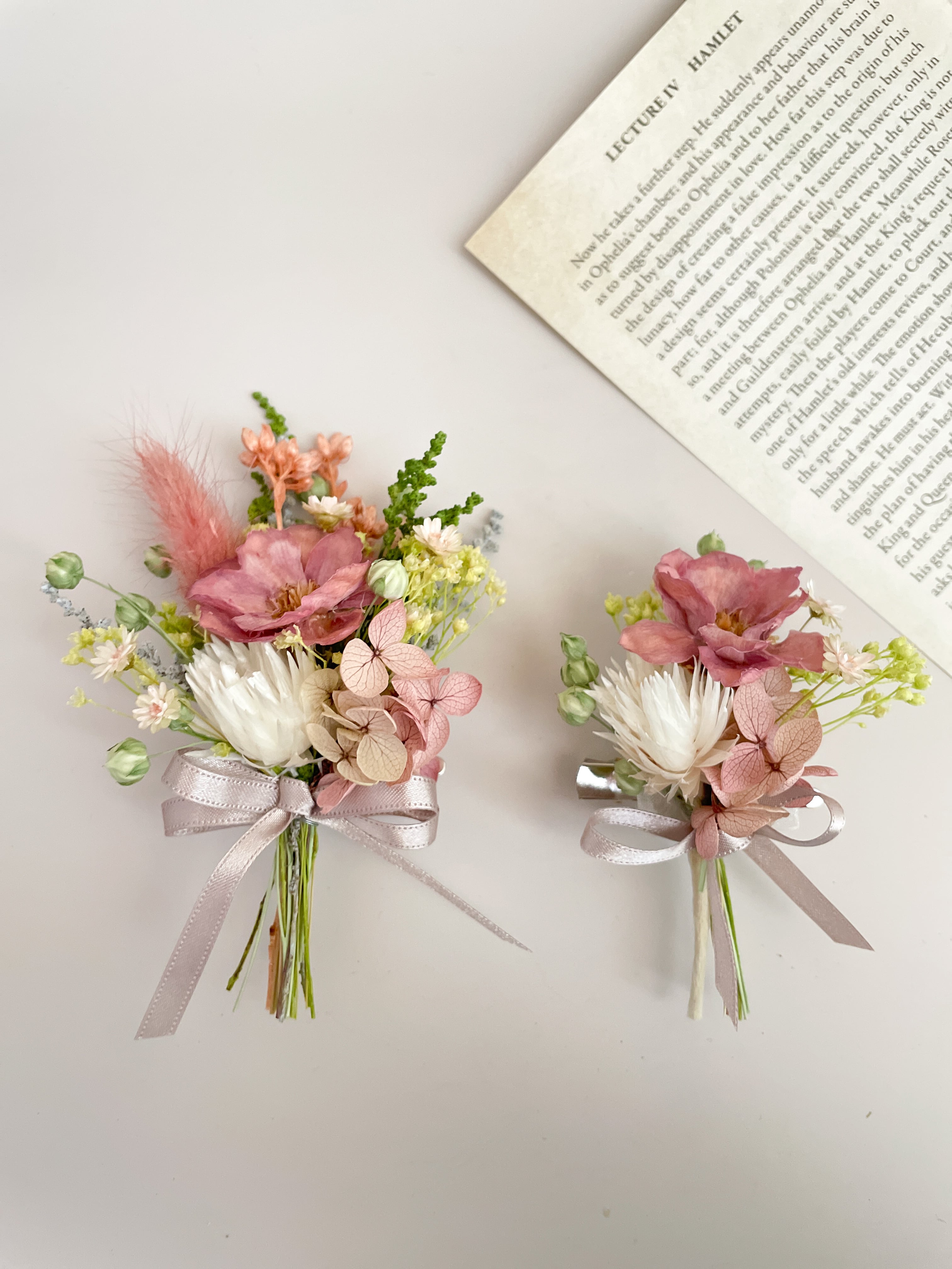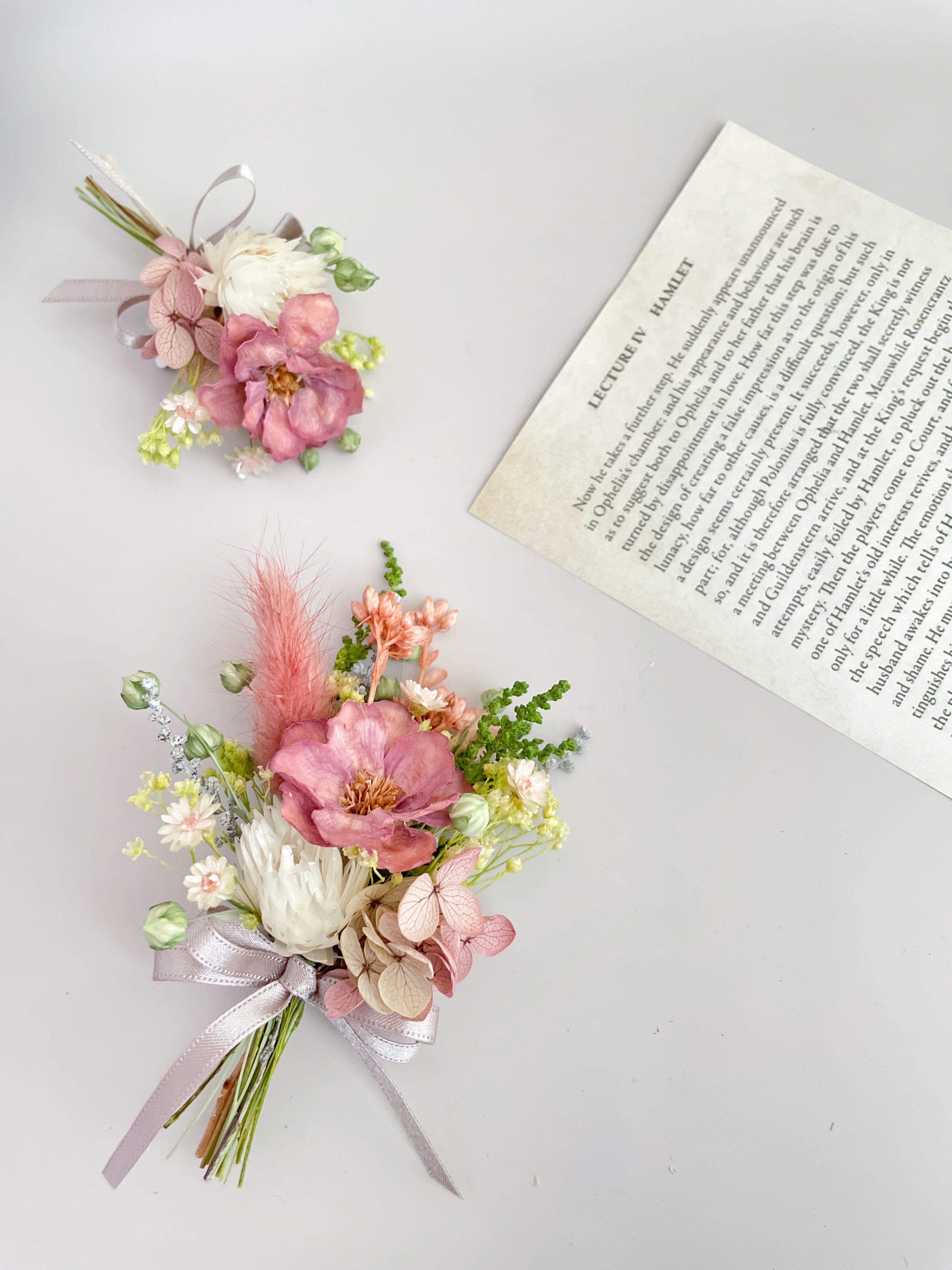 お父様用コサージュのお色味変更(お母様ピンク、お父様ブルー)なども承っております。