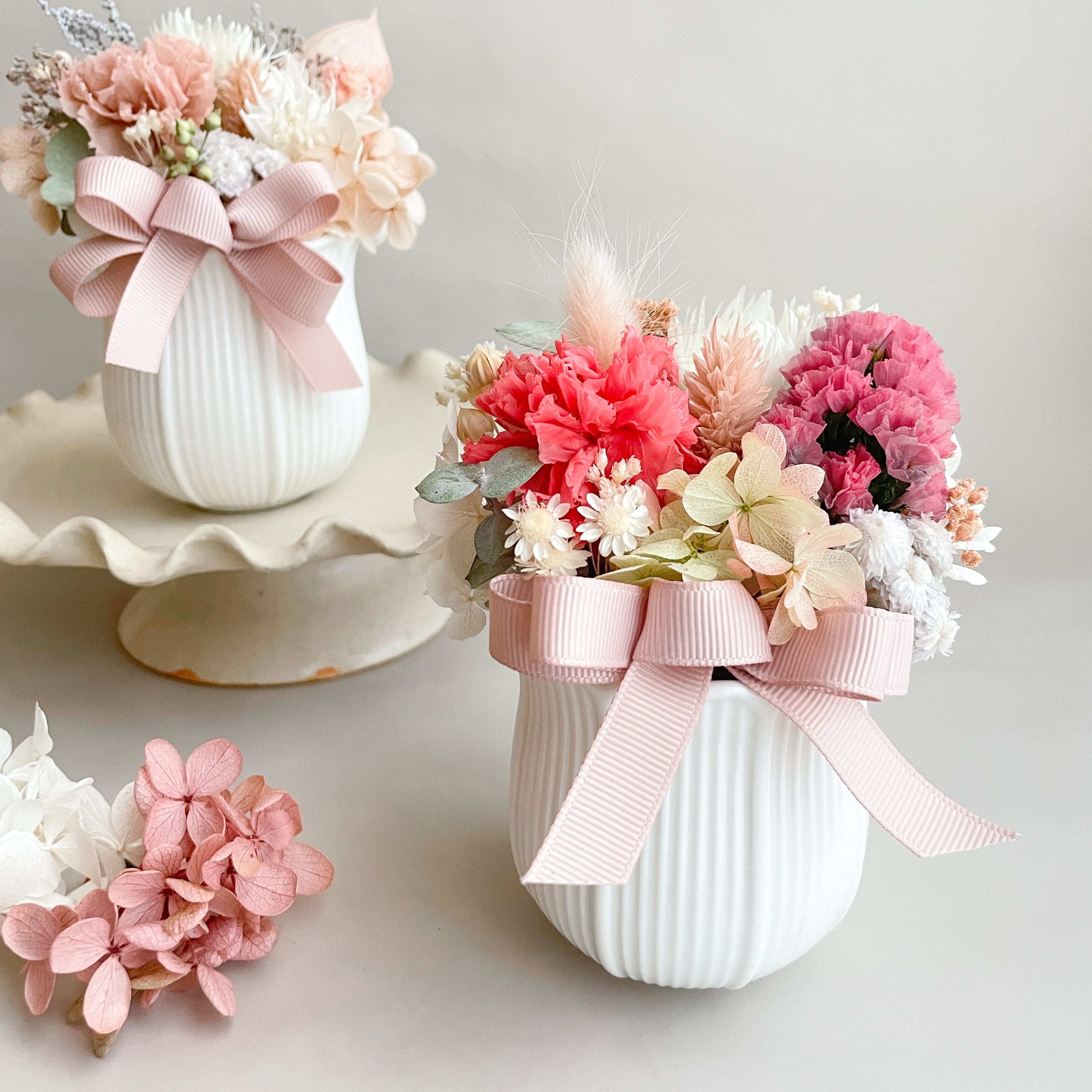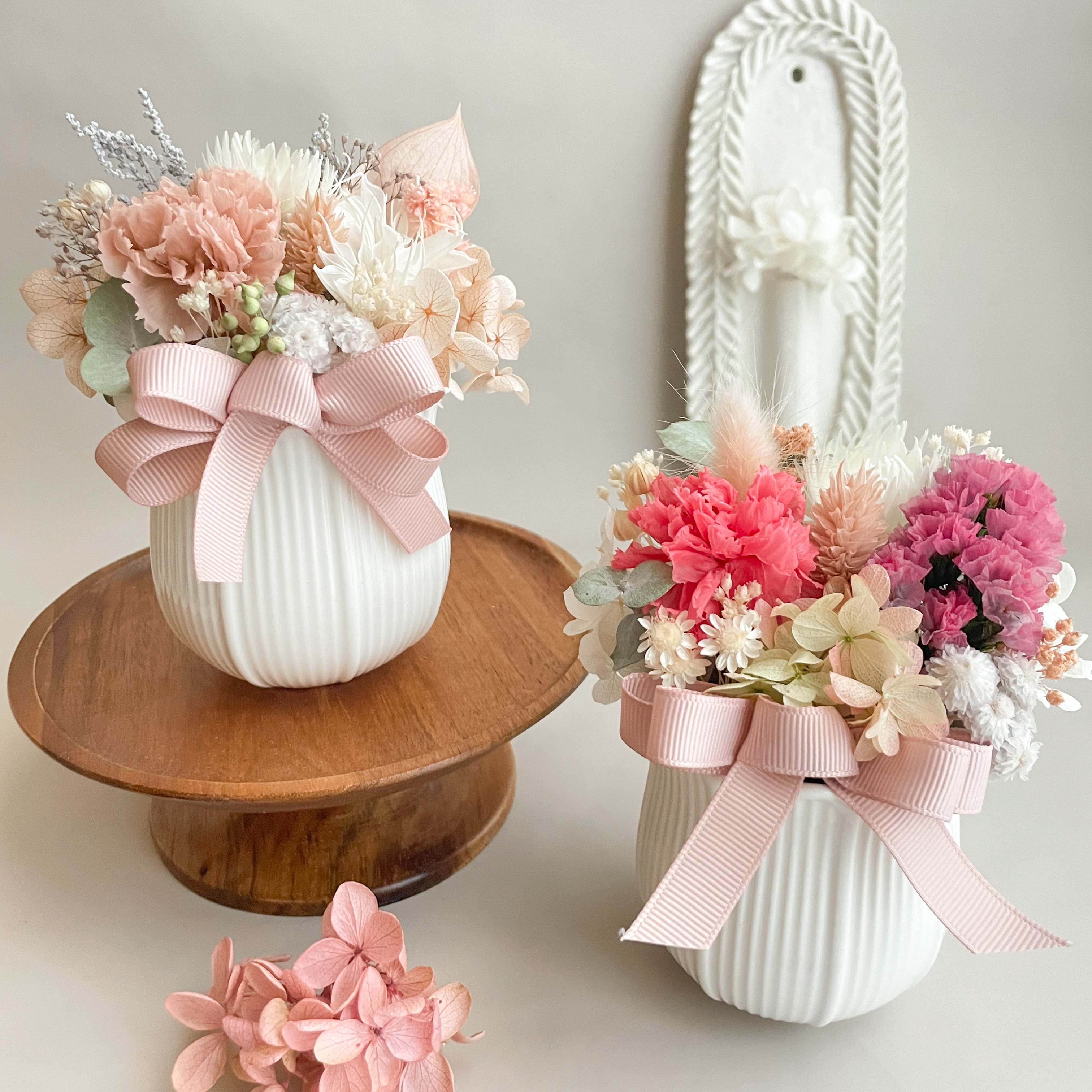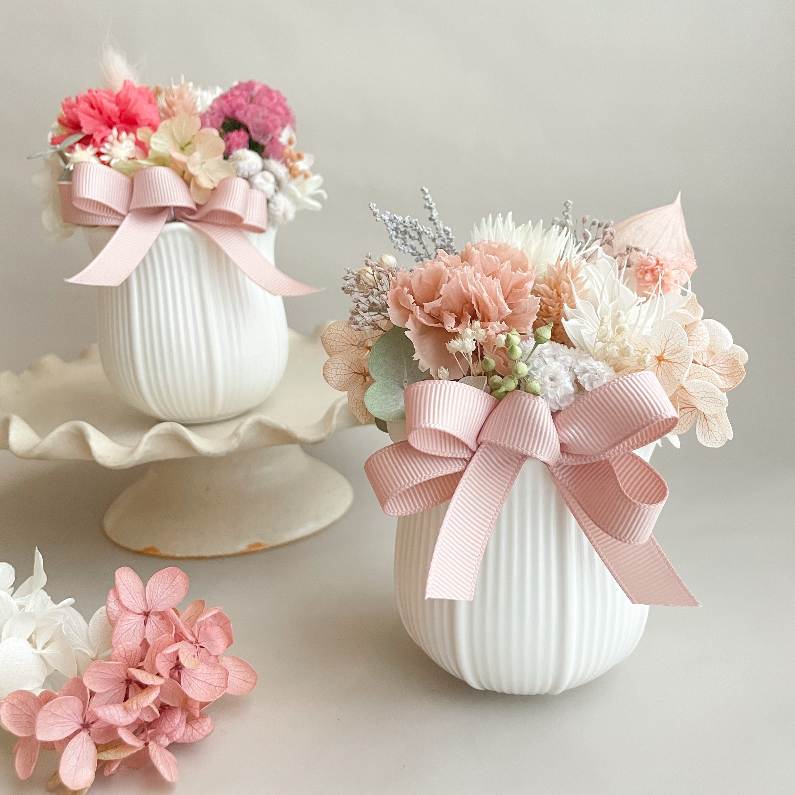 ドライフラワーとプリザーブドフラワーを使用しておりますので、長く飾ってお楽しみいただけます。