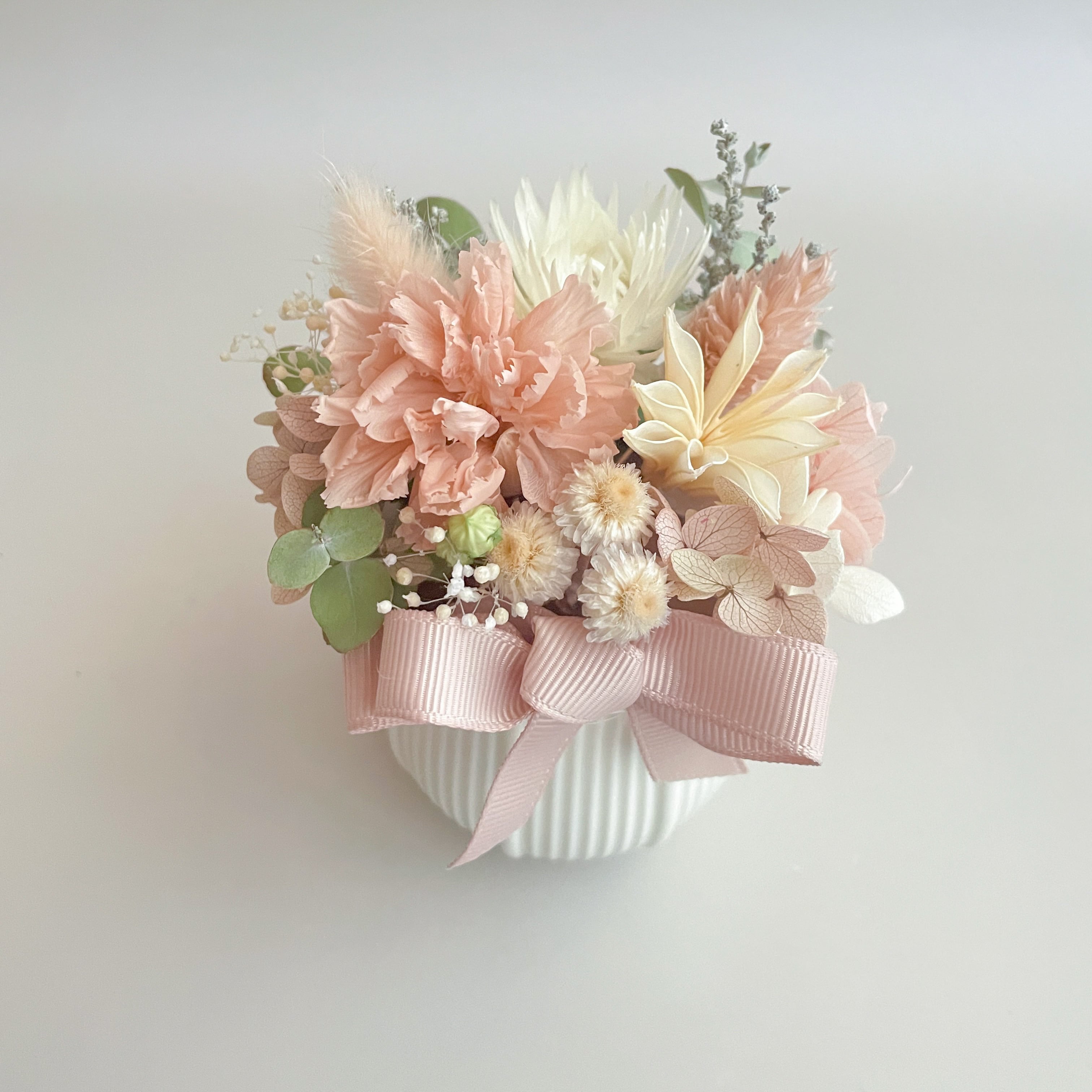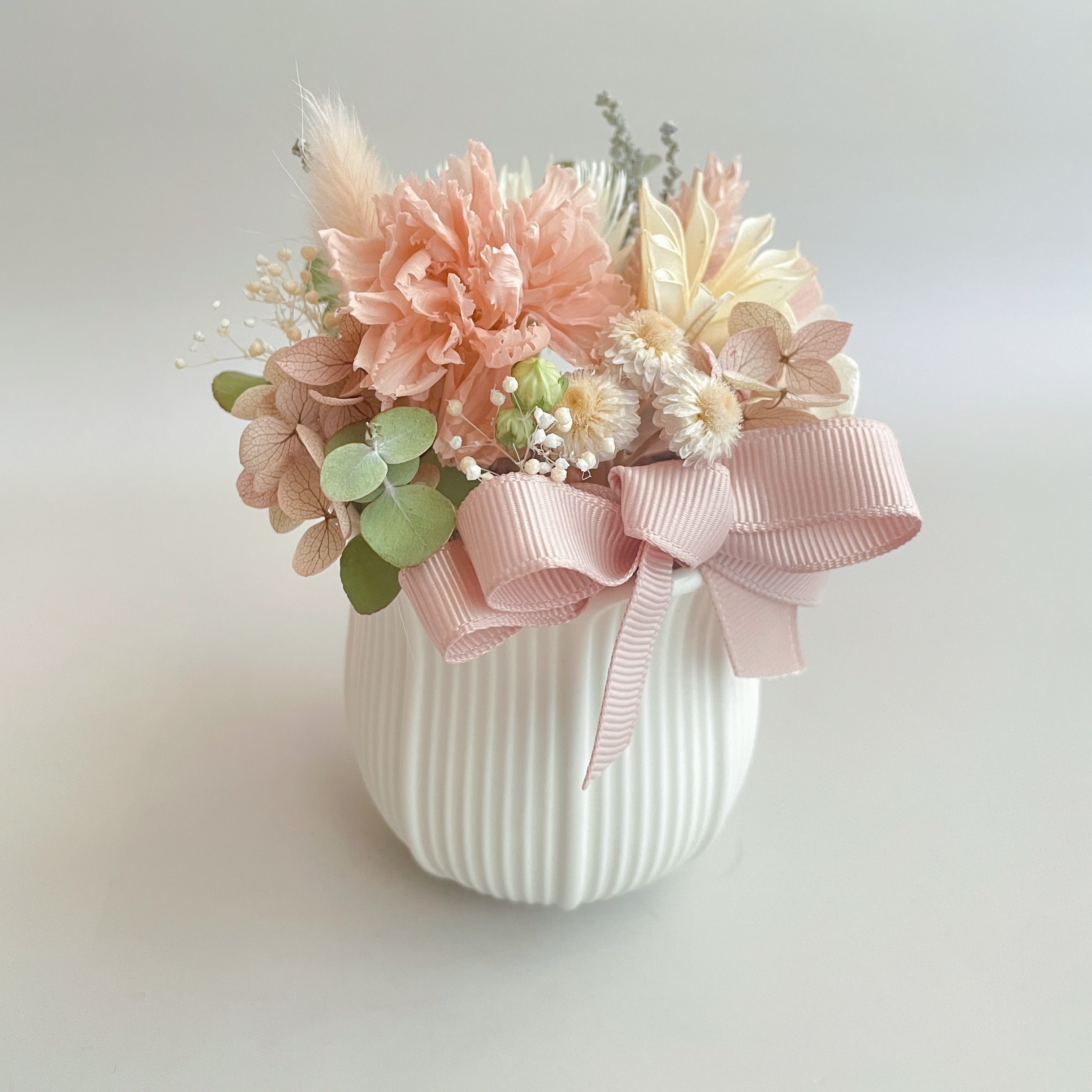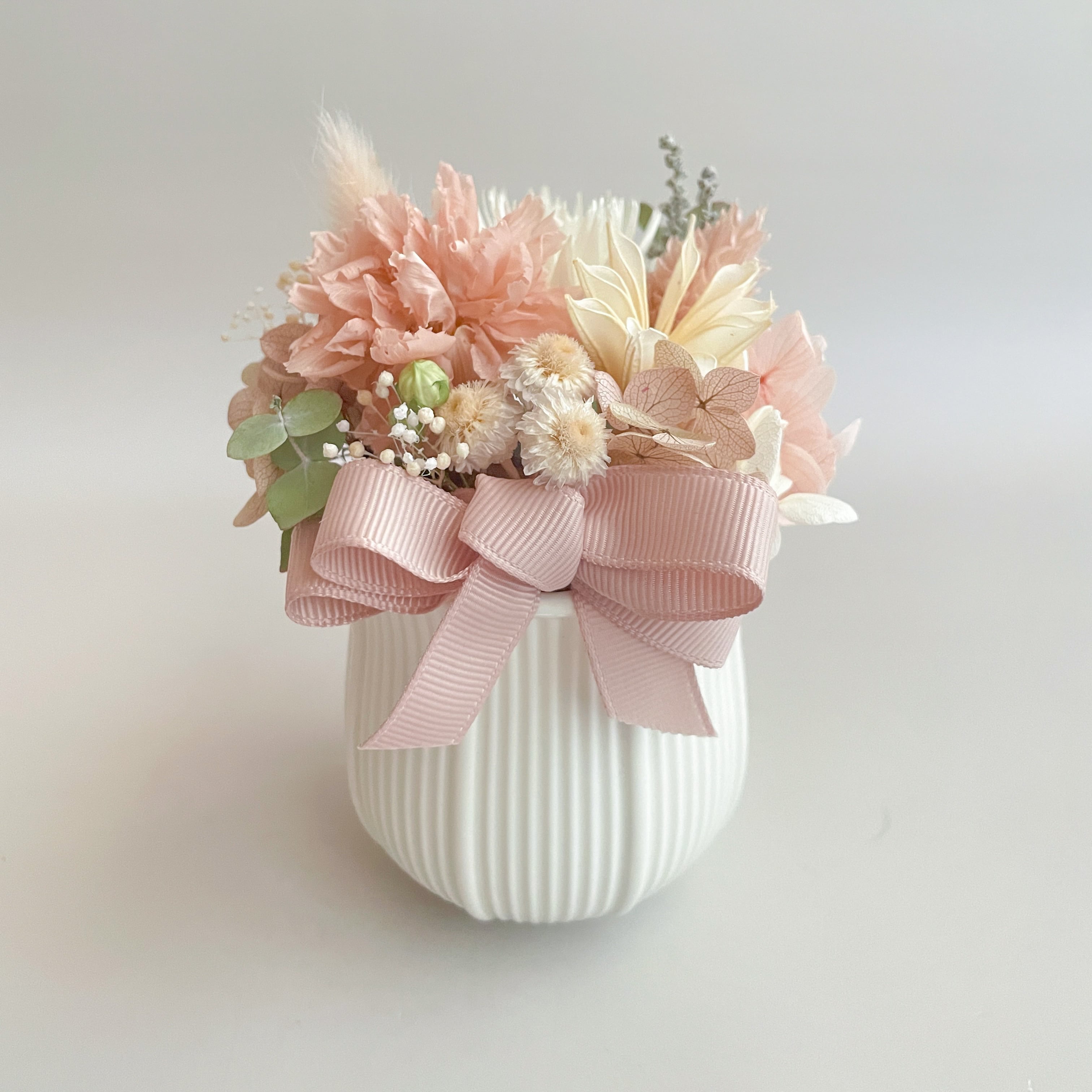 忙しい毎日の中で、ふと目にするたびに心がふんわり和らぐ、そんな癒しのアレンジメントです。