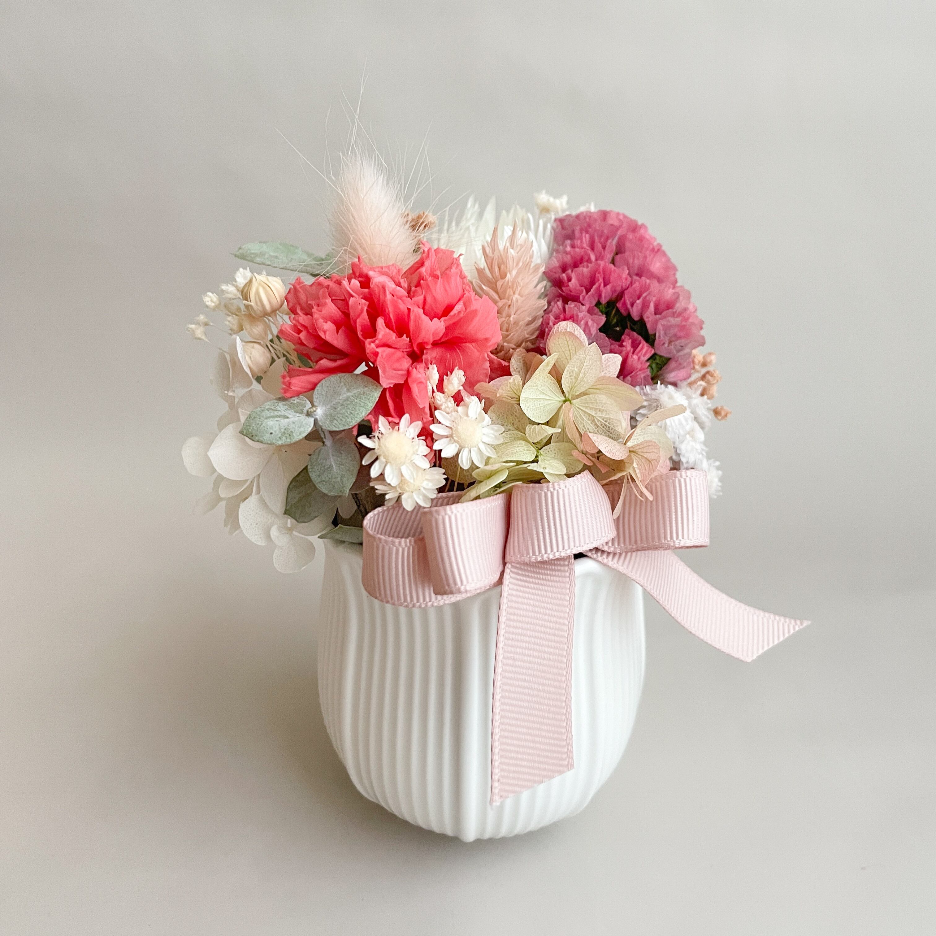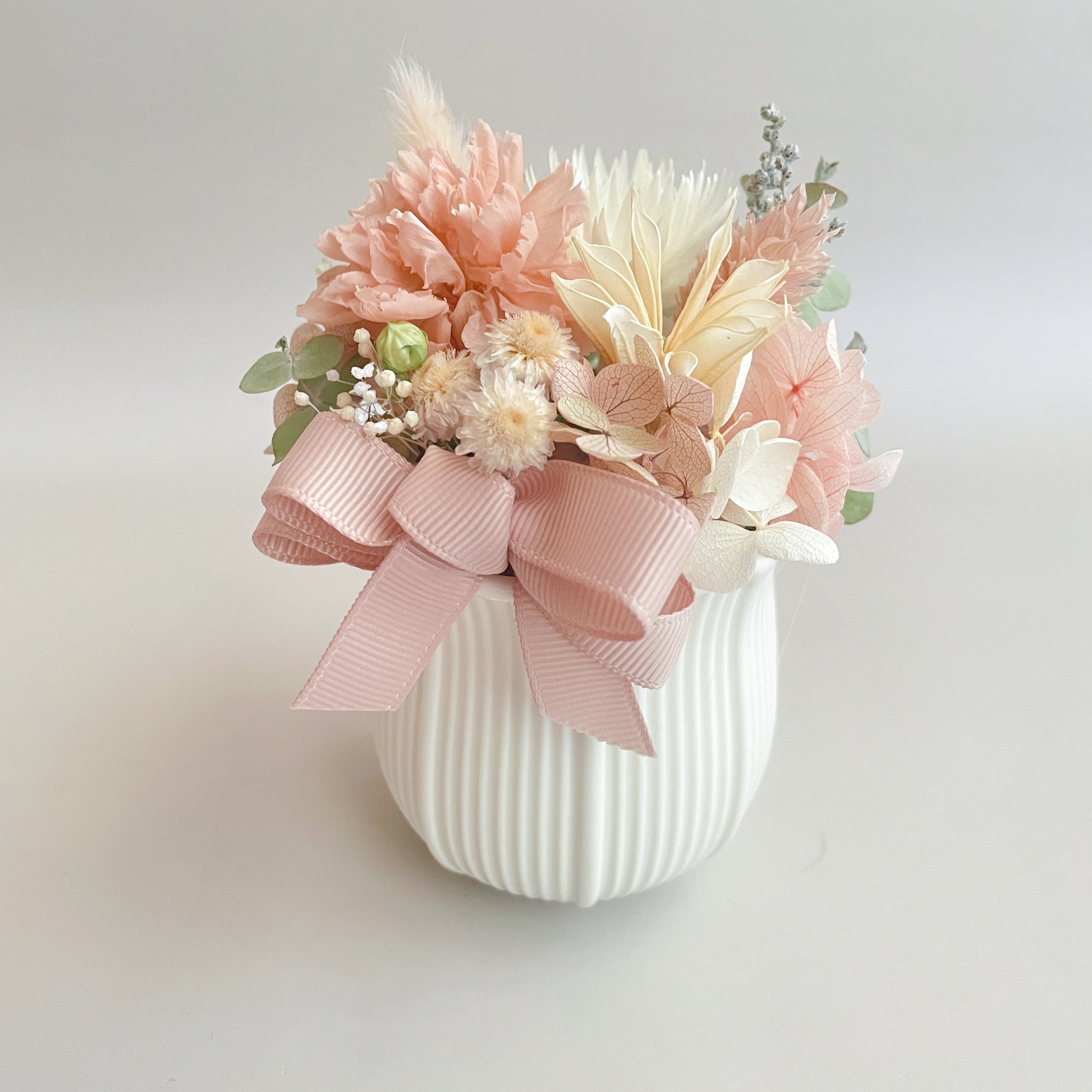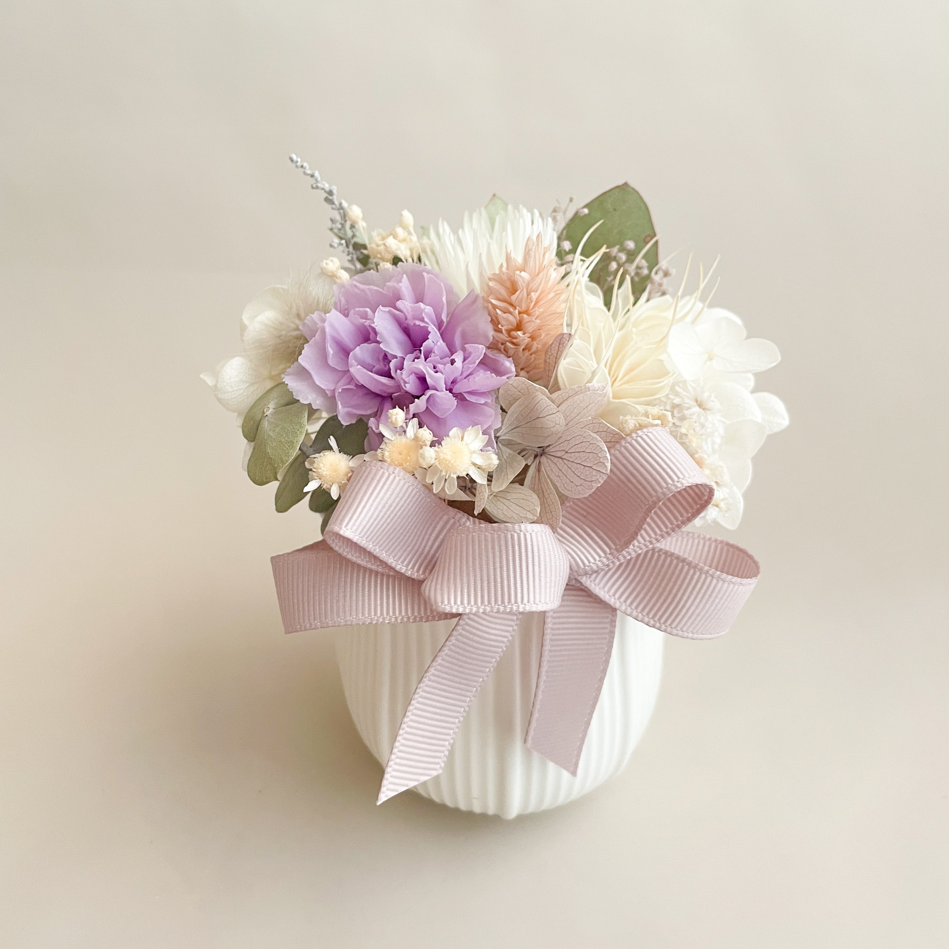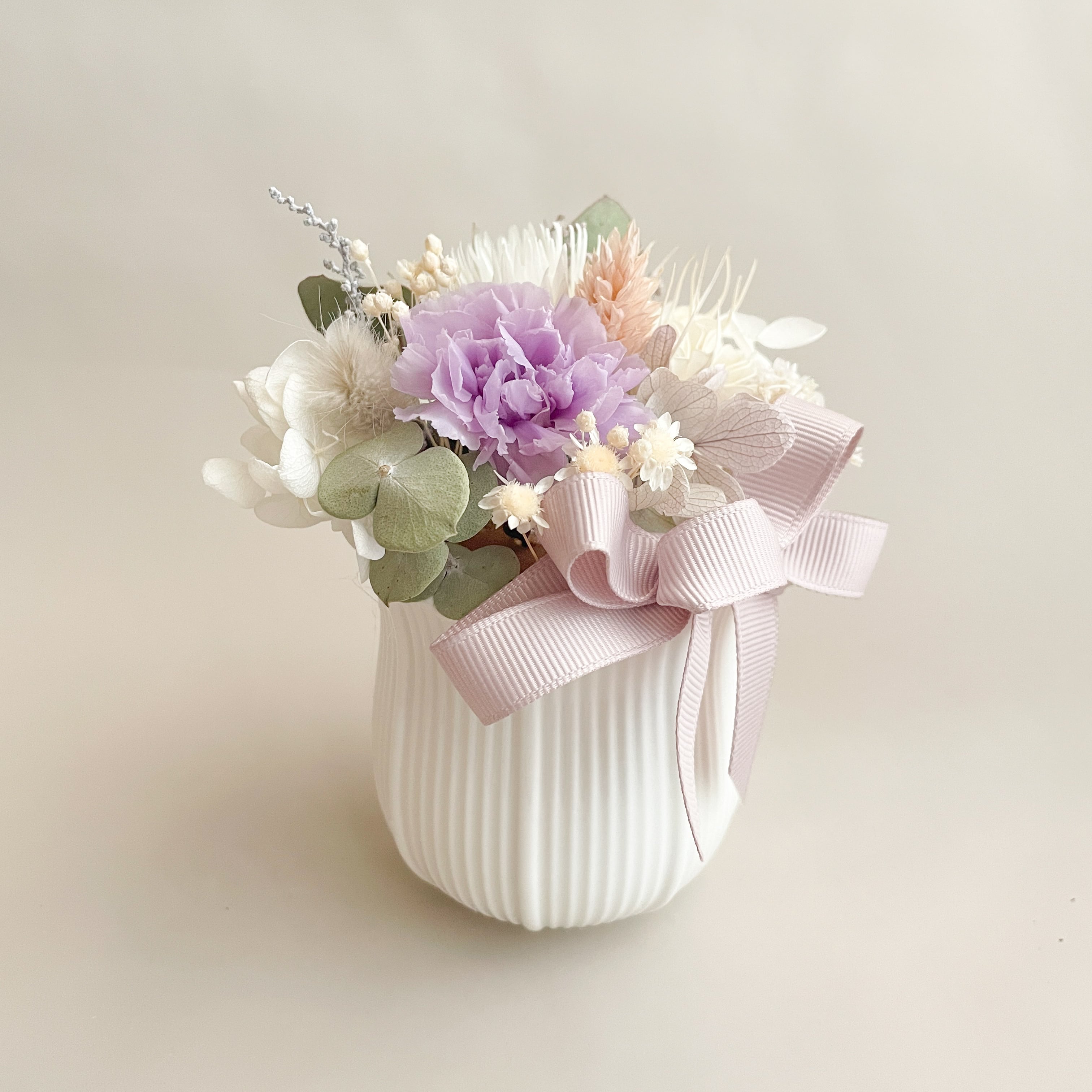 忙しい毎日の中で、ふと目にするたびに心がふんわり和らぐ、そんな癒しのアレンジメントです。
